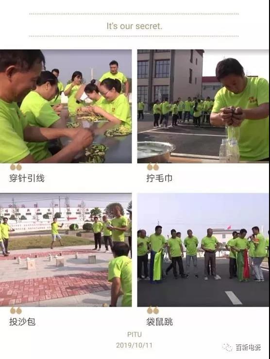 值此舉國(guó)歡慶建國(guó)70周年的秋收季節(jié),江西百新電瓷迎來(lái)了精彩紛呈的趣味運(yùn)動(dòng)會(huì),在為國(guó)慶獻(xiàn)禮,為偉大祖國(guó)祝福的同時(shí),也希望大家在工作之余,能夠多參與鍛煉,保持身體強(qiáng)健。
