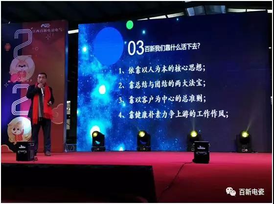 1月12日上午,2019年百新電瓷年度總結(jié)暨新年年會在公司內(nèi)舉行,公司員工及受邀嘉賓300余人參加此次盛會。