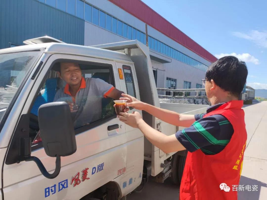 為充分發(fā)揮支部黨員先鋒模范作用,在工作中實(shí)踐群眾路線,服務(wù)好職工群眾,2020年8月13日百新紅色連心服務(wù)隊(duì)一行深入生產(chǎn)一線車間開(kāi)展“送清涼”志愿服務(wù)活動(dòng),傳遞公司職工委員會(huì)及黨支部對(duì)員工的關(guān)愛(ài)。