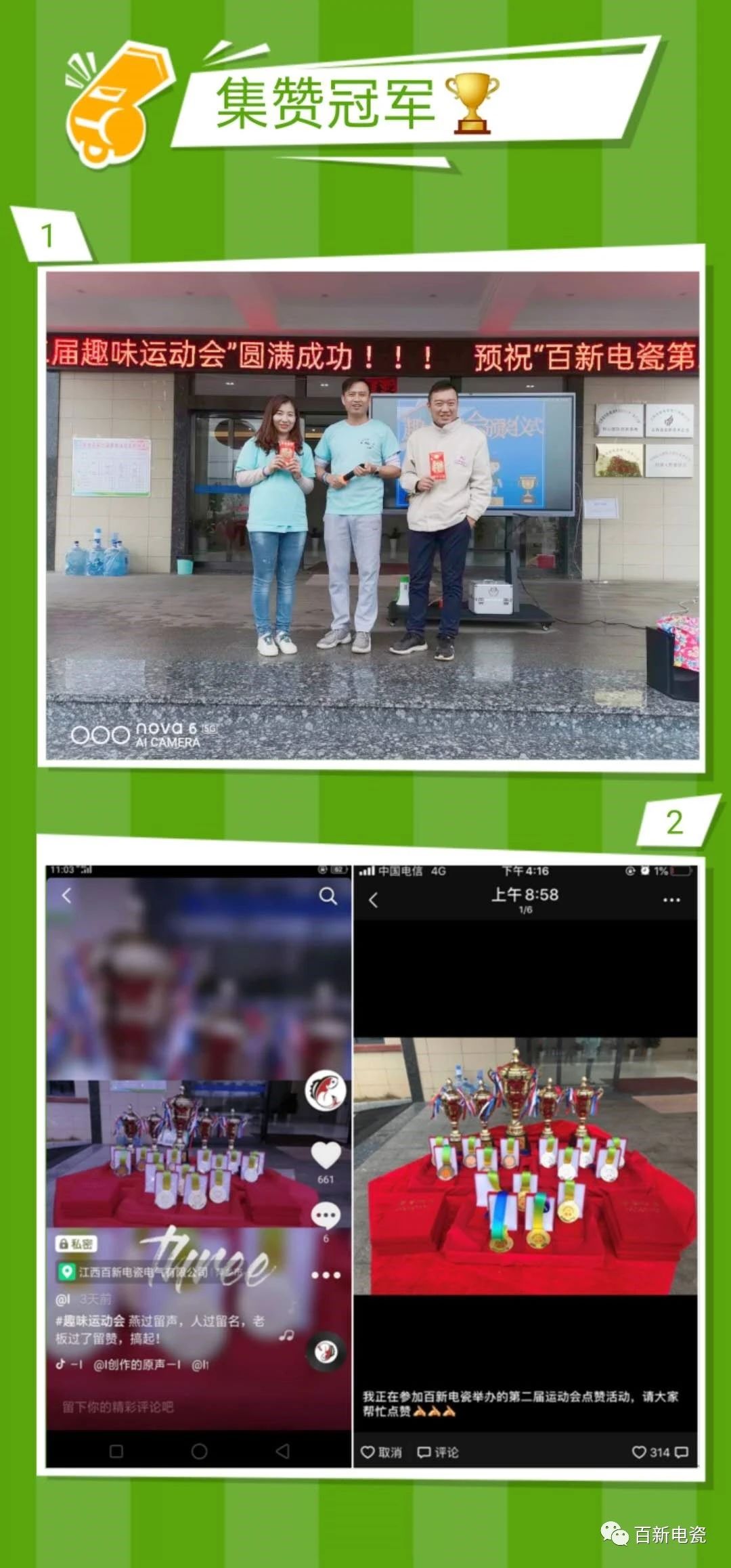 趣味運(yùn)動會給大家提供了一個“健康生活、快樂工作”的平臺,讓大家體驗(yàn)到了運(yùn)動的快樂、競爭的樂趣、團(tuán)隊(duì)的凝聚,這正是百新企業(yè)文化理念的實(shí)踐。我們將以強(qiáng)健的體魄、飽滿的熱情、高昂的斗志、百倍的努力,助推年度目標(biāo)的順利完成。