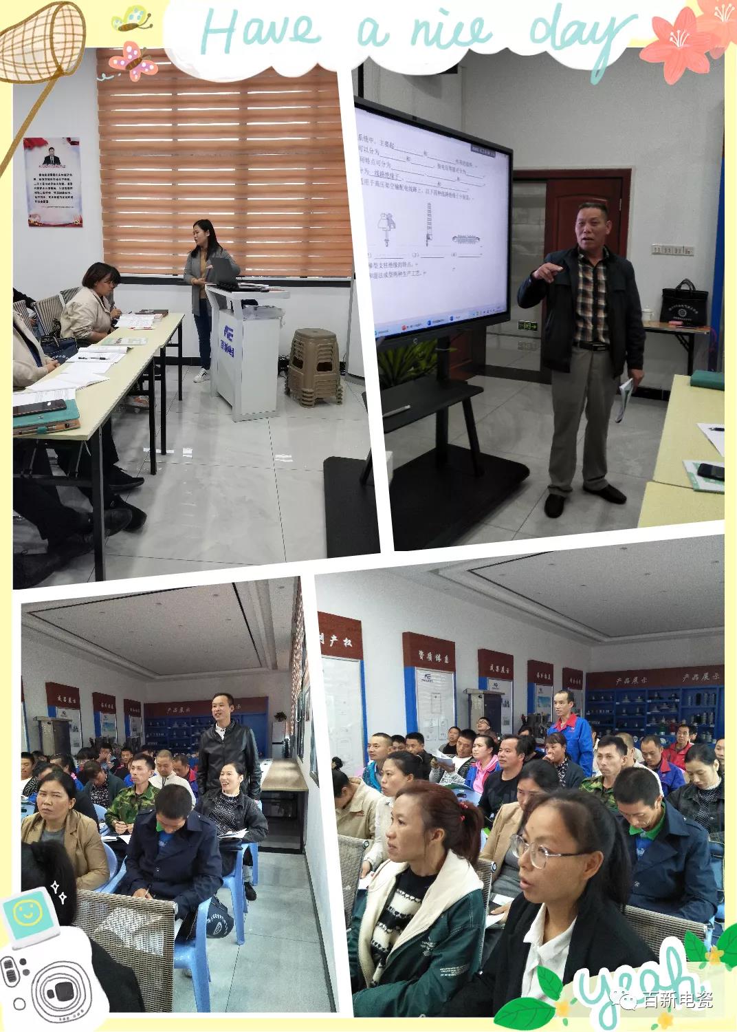 10月15日下午,百新電瓷“企業(yè)新型學(xué)徒制”培訓(xùn)課程在百新辦公樓一樓展廳正式開課,此次培訓(xùn)學(xué)習(xí)周期為期兩年,主要目的是通過(guò)理論+實(shí)踐的學(xué)習(xí)方式,高校講師走進(jìn)企業(yè),通過(guò)企業(yè)組織利用員工的業(yè)余時(shí)間,加強(qiáng)企業(yè)在職員工的理論知識(shí)水平,指導(dǎo)生產(chǎn)現(xiàn)場(chǎng)的實(shí)踐操作,為企業(yè)培養(yǎng)出一批后繼的技術(shù)、管理全面發(fā)展的中層骨干隊(duì)伍。