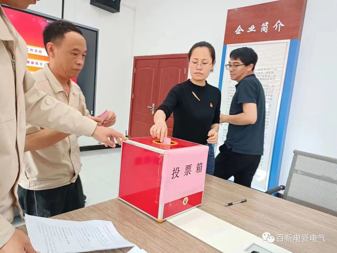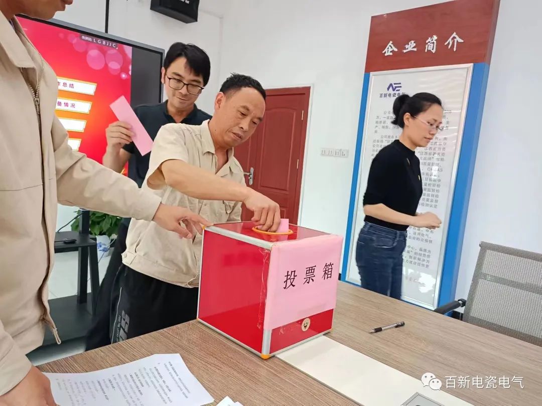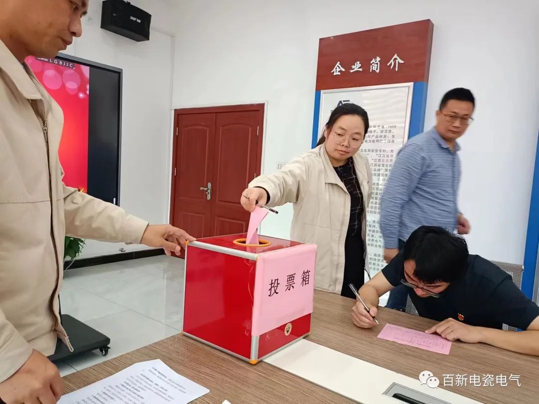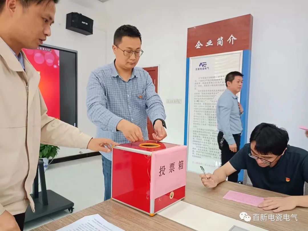 5月24日下午,中共江西百新電瓷電氣有限公司黨支部召開全體黨員大會(huì),選舉產(chǎn)生了新一屆支部委員會(huì),蘆溪工業(yè)園區(qū)黨群工作部部長(zhǎng)沈家君、黨建指導(dǎo)員郭輝到會(huì)進(jìn)行指導(dǎo)。