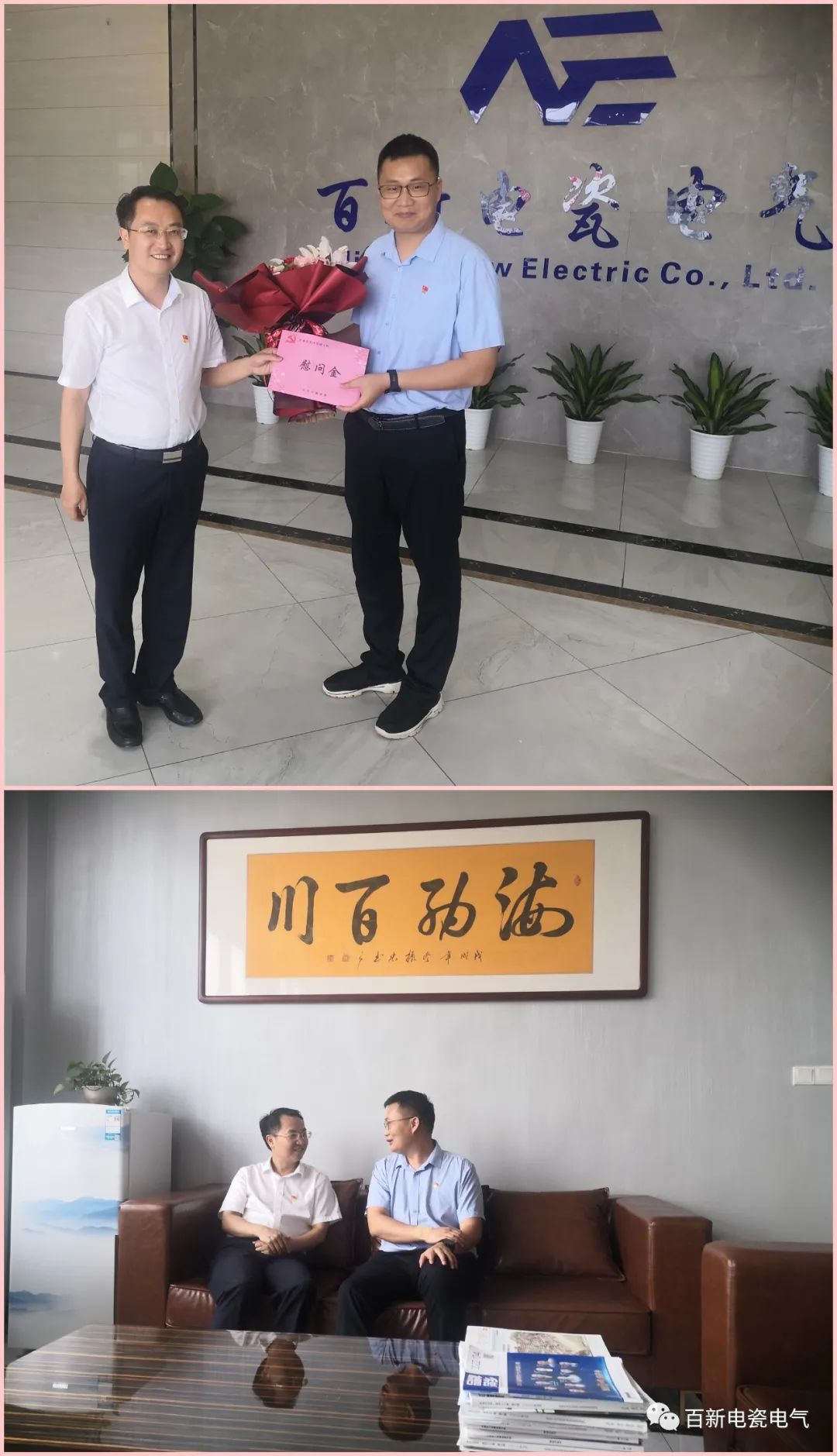 7月1日,蘆溪縣縣委書記黎增義來到百新走訪慰問,送上慰問金,并與百新黨支部書記、總經(jīng)理申自強(qiáng)同志親切交談。